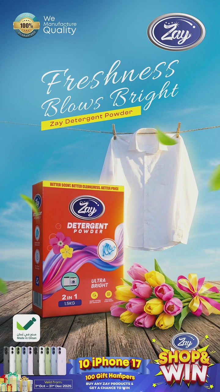 Keep your clothes fresh and clean with Zay Detergent Powder, specially formulated to deliver effective cleaning in every wash. Its powerful formula removes everyday dirt and stains while being gentle on fabrics, leaving clothes bright and pleasantly fresh.